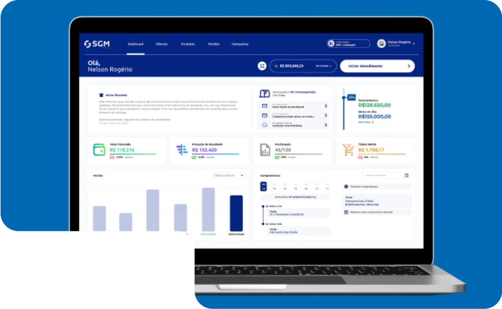 Controle total e eficiência na gestão de sua equipe, tudo em um só lugar. Com o SGM Gestão, você acompanha o desempenho, define metas e facilita a comunicação, tudo na palma da sua mão. Simplifique a administração e potencialize os resultados da sua equipe com nossa solução inteligente